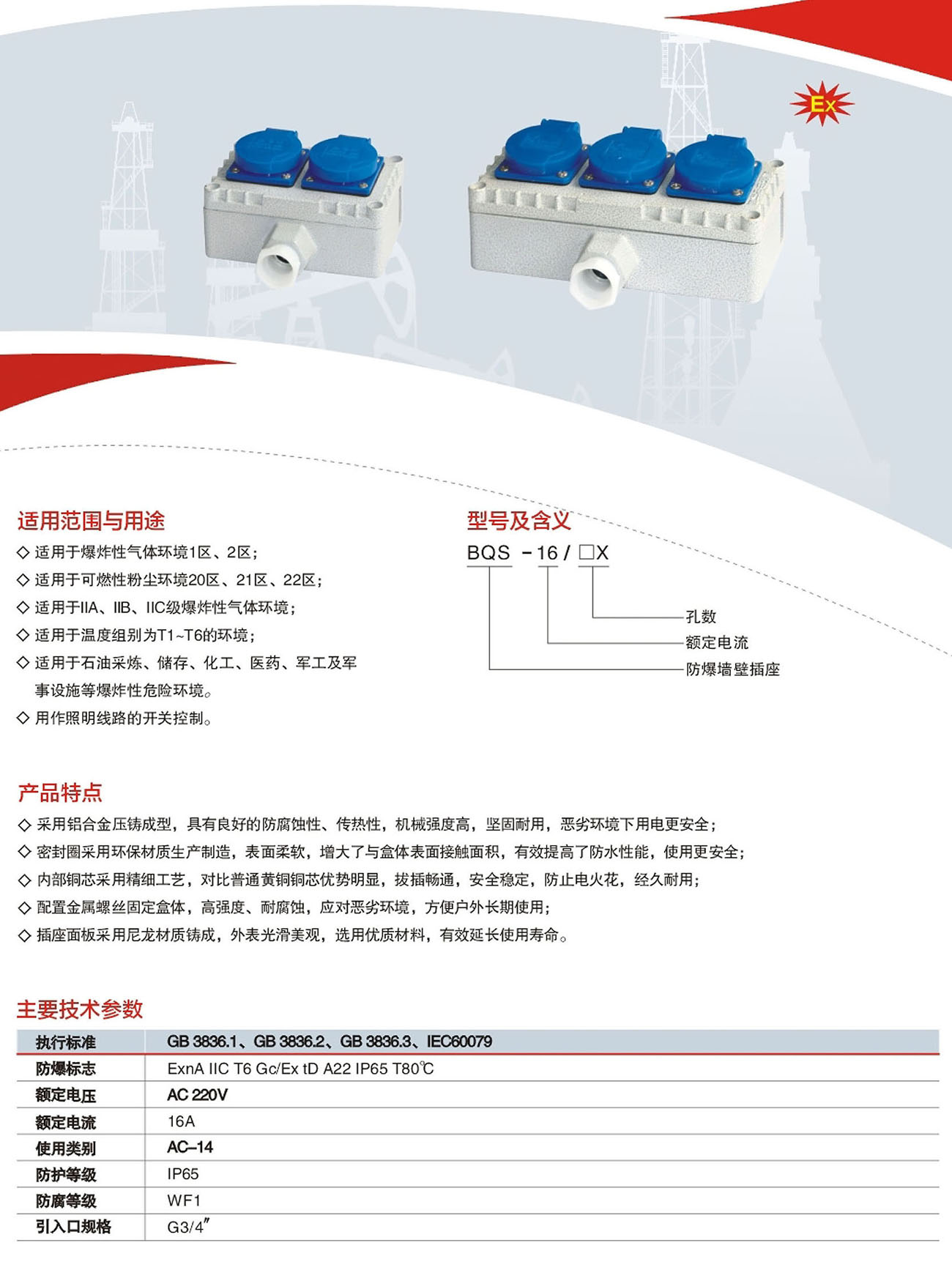 BQS-16系列防爆墙壁插座((IIC、ExtD)