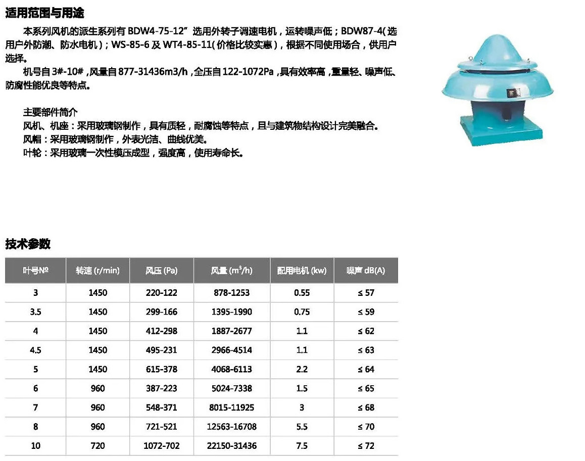 BDW-87-4(BDW4-75-12)(DF3-90-1A)型玻璃钢离心屋项风机