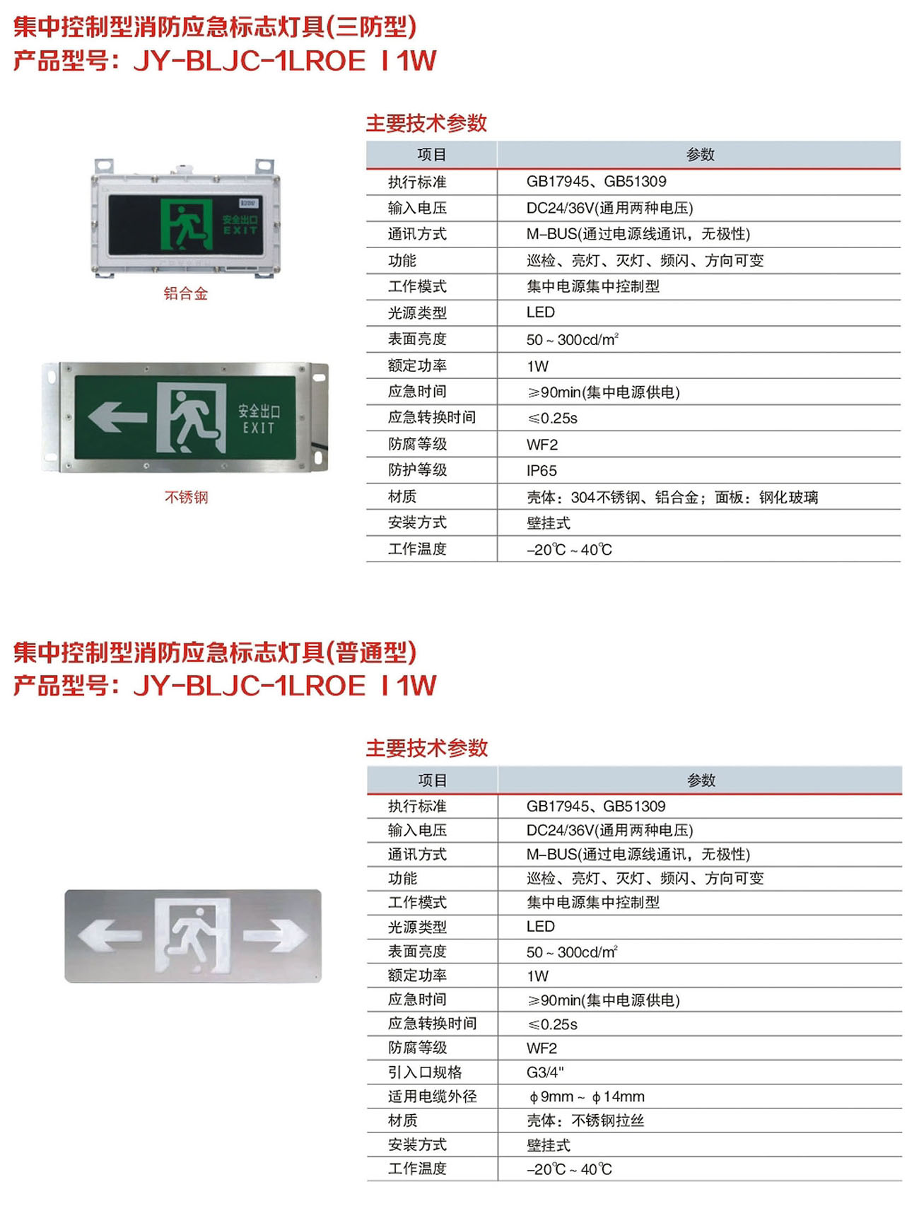 JY-BLJC-1LROE I 1W集中电源集中控制型消防应急标志灯具(三防型、普通型)