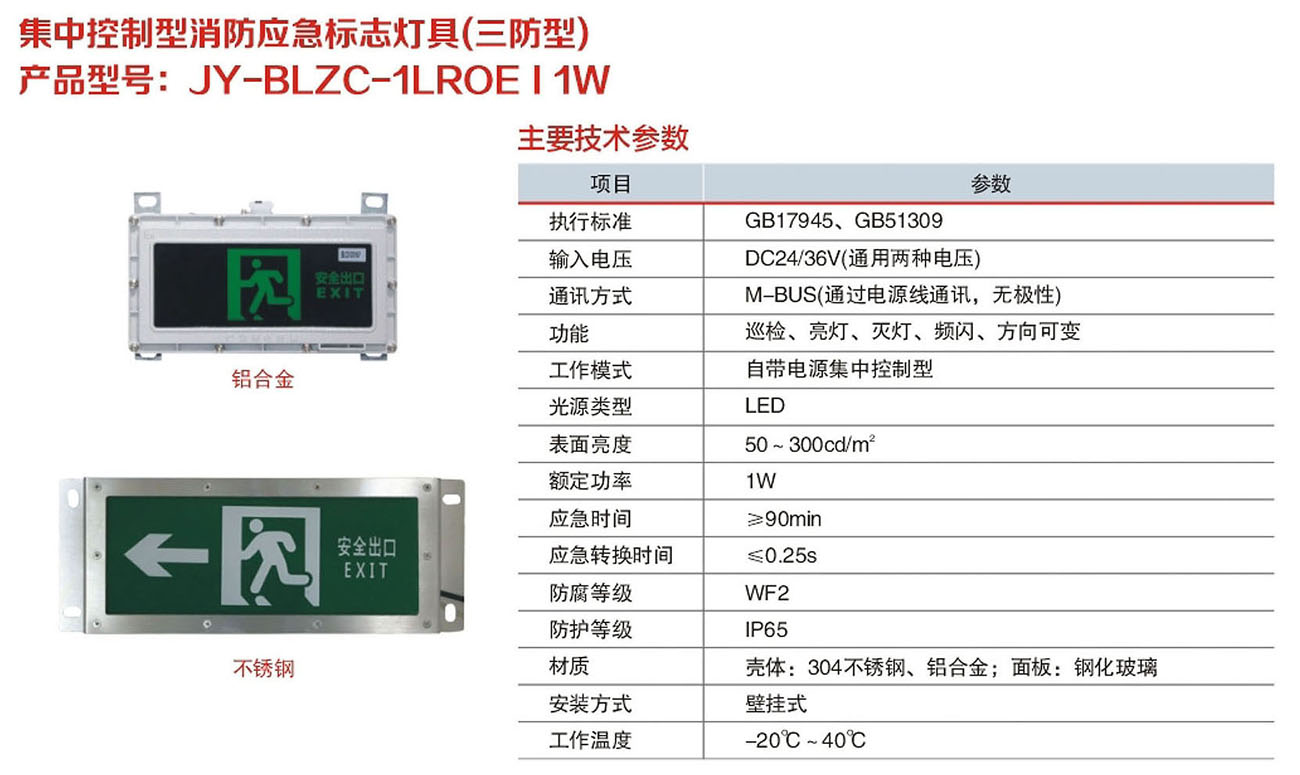 JY-BLZC-1LROE I 1W自带电源集中控制型消防应急标志灯具(三防型、普通型)