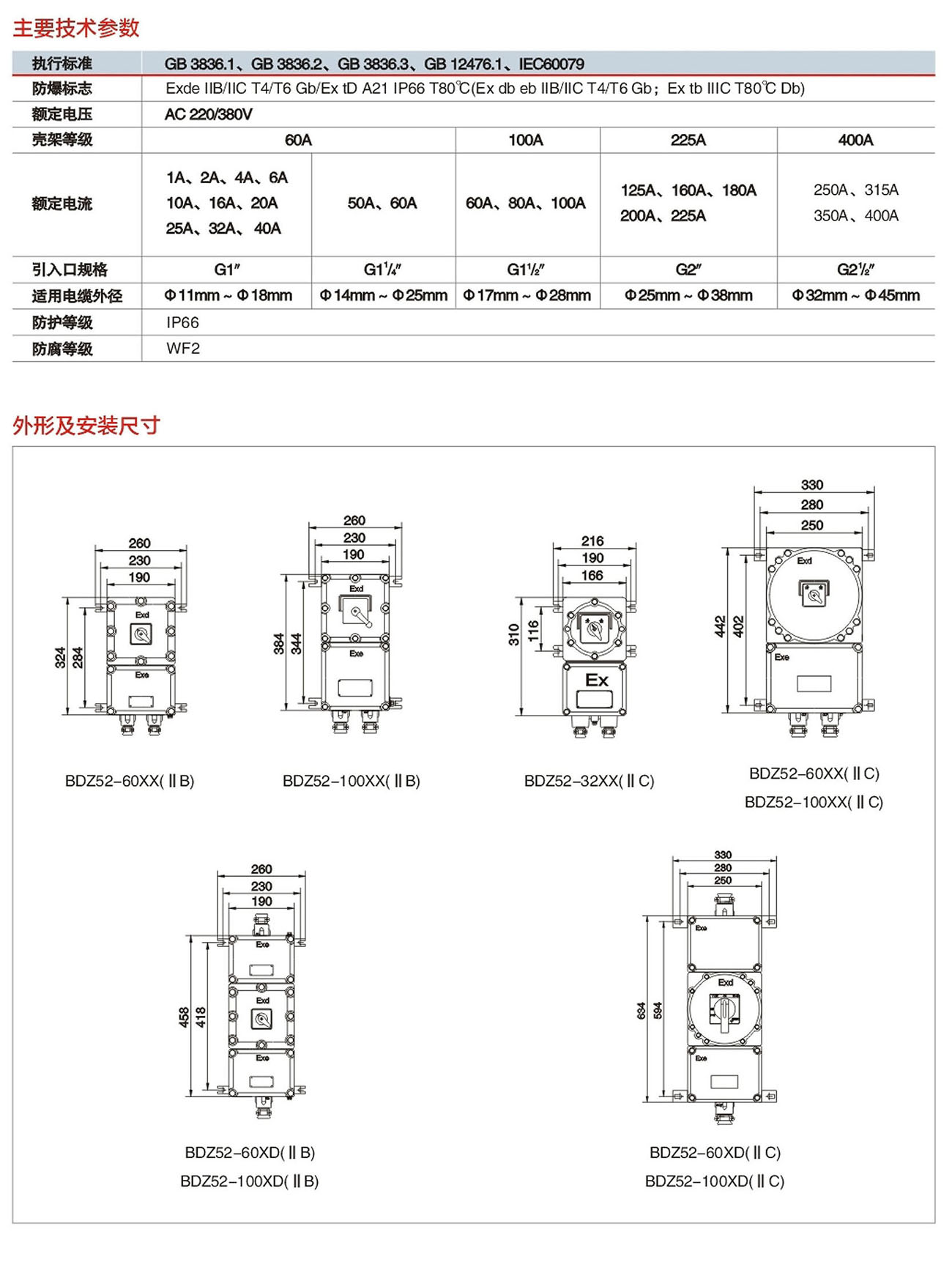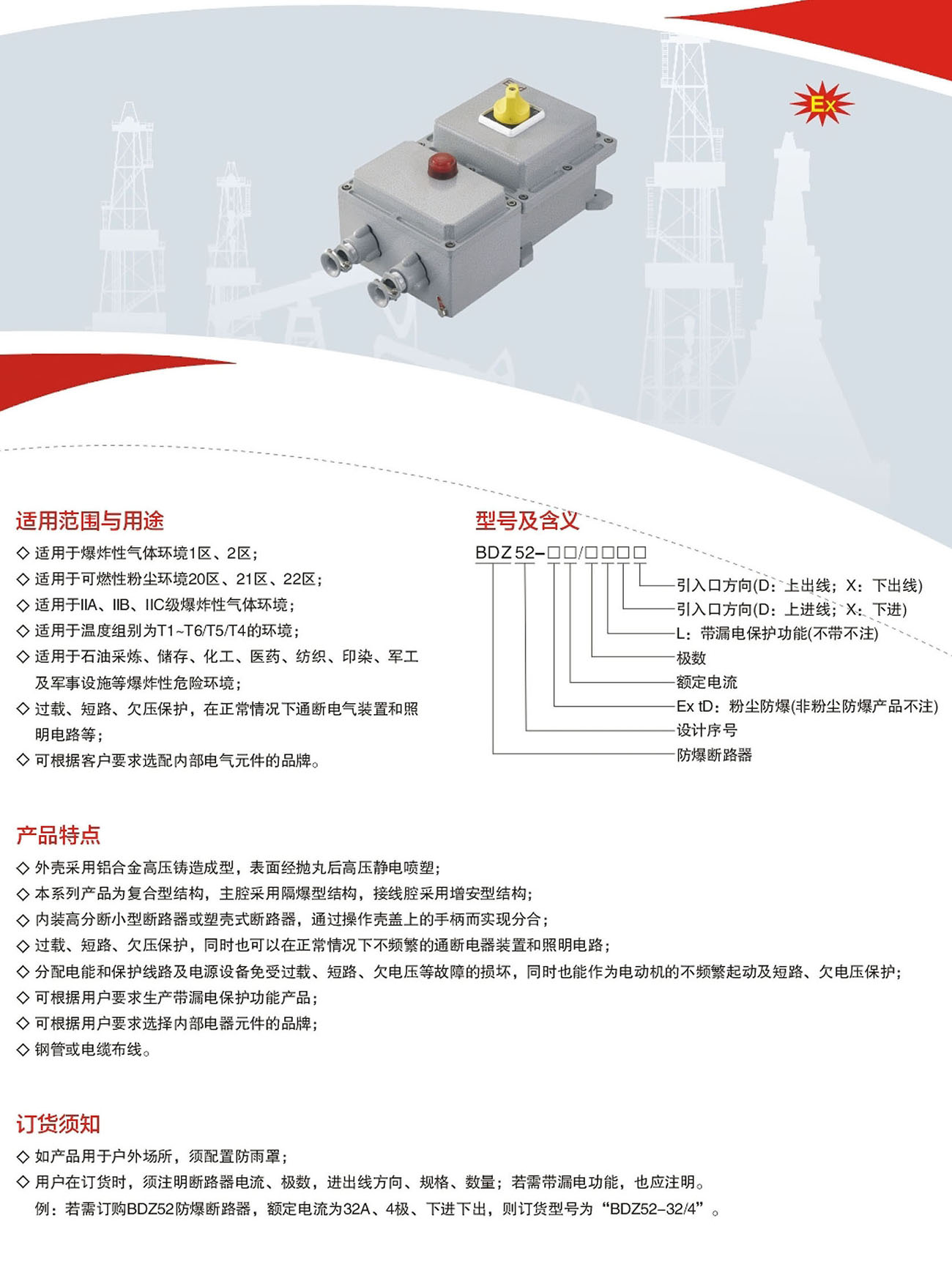 BDZ52系列防爆断路器(IIB、IIC、ExtD)
